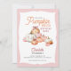 Esta encantadora invitación al cumpleaños de las calabazas muestra una deliciosa mezcla de calabazas naranjas, blancas y rosas, algunas adornadas con pequeños arcos dulces. Esta invitación verdaderamente "niñita" es perfecta para una celebración de cumpleaños de un joven chica.