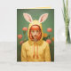 Un retrato sorprendente de una joven de cabello rojo brillante, con un impermeable amarillo con orejas de conejo en el capó, ambientado en un fondo floral de flores rosadas y amarillas. La imagen rebosa un encanto surrealista, parecido a un libro de cuentos.