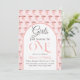 Invitación Chica Coquette Pink Bow Primer cumpleaños