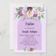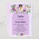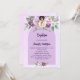 Un fondo violeta y lavanda acuático. Decorada con flores de color violeta y violeta y una cruz dorada. Personalización y nombre y detalles de la recepción.