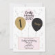 Invitación Chica Cumpleaños 1 Globo Dorado Rosa y Negro Fiest