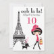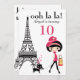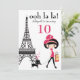 Invitación Chica Cute y Cat Paris Torre Eiffel Cumpleaños