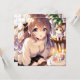 Invitación Chica de anime bonito con torta de gatito y cumple