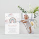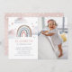 Invitar a amigos y familiares a un día especial para su niñita con estas adorables invitaciones a las fotos con acuarelas. Este diseño presenta un arcoiris pastel pintado a mano y nubes de acuarela. Personalice sus detalles en la tipografía moderna. Hermosa estrella acuarela.