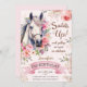 Invitación Chica de caballos 2º cumpleaños Flores rosadas alz