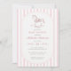 Pink toile de Jouy baby ducha invitaciones para chicas que ofrecen un diseño muy refinado que combina el encanto de inspiración francesa con la elegancia de las guarderías dulces. Con sus suaves franjas rosas, su delicada tipografía de sísmico y guion, su mecedor de acuarela de estilo vintage con sutiles detalles florales de tela de Jouy, esta invitación crea una presentación atemporal y elegante. El diseño clásico resalta la información del evento en un formato equilibrado y estético, perfecto para duchas de bebé tradicionales, románticas o de temática vintage. Con su suave paleta pastel y sus nostálgicos elementos de diseño, esta invitación capta la alegría y la gentileza de dar la bienvenida a una niña de la manera más elegante.