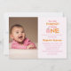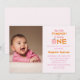 Foto moderna chica de calabaza Invitación de primer cumpleaños. El fondo es rosa, pero se puede personalizar según el color que elija. Crédito de la foto de plantilla a través de Pixabay bajo licencia CC0 y debe ser reemplazado por su propia foto