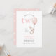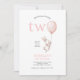 Una encantadora invitación rosa de segundo cumpleaños, perfecta para la fiesta de cumpleaños de Pascua o primavera de una niña. Con un conejo dulce sosteniendo un globo.