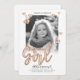 Celebra el chica de cumpleaños con nuestro dulce y elegante chica de cumpleaños rosa globo de Relieve metalizado de oro e invitación fotográfica. El diseño presenta "Chica de cumpleaños" en una tipografía de estilo globo de Relieve metalizado de oro subió. Globos en forma de corazón dorado flotante con forma de rosa enmarcan la foto del chica de cumpleaños. En el reverso se ven algunos globos rosas de Relieve metalizado dorado con un primer monograma colocado en uno de los globos cardíacos.