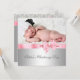 Bonito damasco gris plateado arco rosado niñas bebé foto invitación a bautizar. Añade tus detalles al frente y/o detrás de esta elegante invitación a bautizar en rosa y gris, agregando detalles del evento, estilo de fuente, tamaño de fuente y color, y texto.