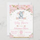 Invitación Chica de elefante Whimsical Floral Rosa Baby Showe