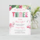 ¡Joven salvaje y tres (gratis)! Invitaciones tropicales a la fiesta de tercer cumpleaños de Flamingo para la celebración de tu pequeña niña.