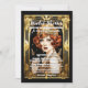 Un marco ornamentado de estilo Art Déco de imitación dorada tiene una entrada negra en la que aparecen plantillas blancas para tu redacción personalizada. Un hermoso chica Flapper con el pelo rojo corto lleva un top formal sin mangas doradas y una banda de cabeza ajustada. Está enmarcada por un marco elegante e intrincado de estilo art decó vintage y su cabello parece brillar y brillar. El diseño es adecuado para las fiestas temáticas de los años 20; celebraciones con temática artística deco o la gran fiesta nupcial de Gatsby y eventos corporativos. Son perfectas tanto para uso profesional como personal. La parte posterior tiene el mismo gráfico con una plantilla para el encabezado o información adicional.