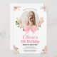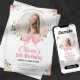 Invitación Chica de foto de Floral Rosa Bow Cumpleaños