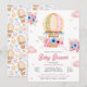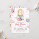 Invitación Chica de globo aerostático azul rosa Floral calien