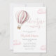 Esta encantadora invitación a la ducha de bebé cuenta con un bonito globo de aire caliente rosa y nubes, junto con una elegante tipografía de escritura. Con el código QR de su registro y la foto especial al revés. Diseñado por Thisisnotme©