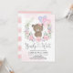 Invitación Chica de globos de oso rosado púrpura Teddy Baby S