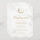 Invite a sus invitados a la confirmación católica de su hija con estilo con esta elegante tarjeta de invitación. Esta plantilla de diseño presenta un fondo de mármol blanco y gris con una falsa cruz de oro con una corona de laurel en la parte superior y sus detalles de celebración debajo en una elegante tipografía de oro falso para personalizar enmarcado en un delgado borde de corte de oro. En la parte trasera de la tarjeta hay mármol blanco y gris. Me encantó diseñar esta invitación para ti. ¡Espero que lo disfrutes! Diseñado por la artista ©Susan Coffey.