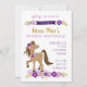 Invitación a una fiesta para un cumpleaños o celebración con tema de caballo o poni en púrpura y dorado. Contactar al vendedor para opciones de colores personalizados.