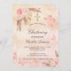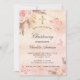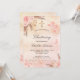 Un fondo de color oro rosa, color rosa oscuro, fino y de aspecto metálico. Decorada con rosa de oro y flores rosadas, rosas, pampas de pasto, mariposas y una cruz dorada. Personalice y agregue un nombre y los detalles.