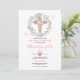 Chica de Flores Cruzadas Rosadas Invitación de la Santa Comunión Primera Comunión