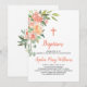 Invitación al bautismo de bebé con flores de melocotón y crema personalizado asequible imprimió invitaciones para bautizar a bebé. Este diseño de bonito tiene un borde floral acuático con melocotones pastel y flores y vegetación crema. Personalice el diseño con los detalles del fiesta de bautismo de su hijo. El lado inverso tiene un patrón de franja de color melocotón y crema o usa el espacio para añadir texto y fotos adicionales. Haga clic en Personalizar para elegir cualquier color de fondo y editar los tipos de letra y colores del texto para crear uno único de una amable invitación a la Navidad para su bebé.