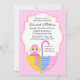 © 2012 Diseños de Socialite. Celebra con la futura madre/futuros padres con esta caprichosa invitación a la ducha de bebé. Nuestro diseño tiene un bebé caprichoso dentro de un paraguas y una cubierta cubierta. Una invitación perfecta para una ducha de bebé para una niña.