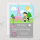 Esta tierna y divertida invitación tiene un chica rubio con un caniche. Como telón de fondo se encuentra la Torre Eiffel, el sol, las nubes y los árboles. Hay un cartel y una mesa con sillas para el tema de París. El texto combina fuentes decorativas y serif para un estilo elegante y moderno. Es perfecto para una fiesta de cumpleaños temática en París.
