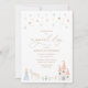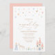 Celebra tu cumpleaños con esta adorable invitación temática, con una princesa, unicornio y un castillo mágico en tonos pastel.