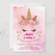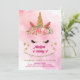 Invitación de cumpleaños a Chica de Purpurina de oro con arcoiris mágico Unicornio
