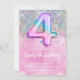 Purpurina de plantilla Fiesta de cumpleaños invita a Chica de Relieve metalizado arcoiris a cumplir 4 años