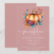 Esta moderna y elegante invitación de shower para bebé de otoño rústica rosa polvorienta 'una pequeña calabaza está en camino' con ilustraciones de acuarela puede ser personalizada con tu información en tipografía elegante. Diseñada por Thisisnotme©