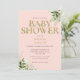 Una elegante ducha de bebé con una elegante tipografía de oro y vegetación botánica de bonito sobre un fondo rosa rubor. Diseñado por Thisisnotme©