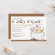 Cinta de la figura de palo en una tina bebé Invitación a la ducha. El diseño muestra a la bebé más amable sentada en una bañera con un pato amarillo y burbujas de jabón. Estampillas de correo y pegatinas disponibles en nuestra tienda