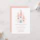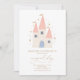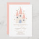 Celebra el cumpleaños de tu pequeña con esta invitación temática a la princesa, con un mágico castillo con detalles en rosa y oro.