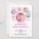 Celebra el hito especial de tu hijo con esta mágica invitación de cumpleaños temática en el espacio exterior. Con planetas imaginarios, luna y estrellas de color rosa, púrpura, menta y dorado.