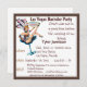 Invitaciones de despedida de soltero en Las Vegas con el letrero de bienvenida y arte de chica del casino. Fácilmente personalizable para fiestas con temática de casino en otras ubicaciones también. El divertido traje de la chica del espectáculo, vaso de cóctel y el famoso letrero de bienvenida de Las Vegas crean un diseño personalizado genial para fiestas de boda.