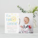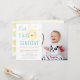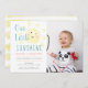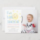Esta sencilla y bonita invitación a los chicas de 1er/1er cumpleaños incluye tu foto y un fondo blanco con el sol sonriente de color agua. El reverso presenta un fondo blanco con rayas amarillas de color agua. Personalice sus necesidades. Puedes encontrar más productos a juego en mi tienda.