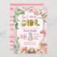 Invitación de Chica Dinosaurio Rosa Jurásico Baby Shower