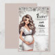 Invitación Chica Embarazada Lindo Cabello Ondulado Floral Oh