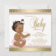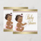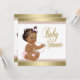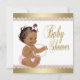 Invitación de baby shower rosa y dorada con hermoso fondo dorado y adorable bebé étnico con pantalones de volantes rosados y collar de perlas sobre un hermoso fondo de diamantes de perlas rosado y dorado. Esta adorable invitación de baby shower femenina rosa y dorada se personaliza fácilmente para su evento agregando los detalles del evento, estilo de fuente, tamaño y color de fuente, y redacción. También puede agregar un color de fondo. Este es un diseño impreso sin auténtico foil, brillo, joyas, lazos, etc.
