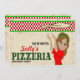 Invitación a un fiesta de pizza. Abre una pequeña Pizzeria en tu casa. tenemos delantales, botones, camisetas y pancartas a juego que cuelgan sobre tu puerta que coinciden con la invitación de esta fiesta de pizza, Un tema divertido de cumpleaños para todos los niños de todas las edades.