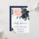 Invitación chica floral rosa y azul marino Rubor ducha bebé