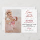 Esta invitación para la fiesta del primer cumpleaños de esta linda niña dice, "Uno de muchos primeros", jugando con la edad y enfatizando la importancia de este cumpleaños trascendental. La invitación es una mezcla dulce, pero elegante de hermosa letra, tipografía moderna y dos fotografías - una en la parte delantera y otra en la parte trasera. Usted puede personalizar fácilmente esta invitación única con detalles sobre la fiesta de cumpleaños. Está disponible en papel de alta calidad y, convenientemente, también como descarga instantánea. Su bebé está creciendo - esta fiesta de cumpleaños es solo una de muchas primeras veces - y es algo maravilloso para celebrar.