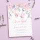 ¡Esta dulce invitación a bañarse con mariposas pastel es tan bonita! Hermosas flores acuáticas de color rosa pastel y púrpura lavanda. Dos mariposas de bonito decoran este diseño único y le dan un toque femenino. El elegante tipo de letra del guión de caligrafía puede cambiarse a cualquier color o estilo que elija.
