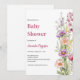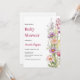 Un fondo blanco moda. Decorada con flores silvestres de color rosa, morado y amarillo. Personalice y agregue el nombre de la madre para ser y los detalles del fiesta.