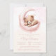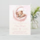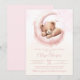 Invitación de revelación de bebé de osa con una adorable osa bebé con lazo lindo en un fondo de luna soñadora. Esta invitación de revelación de bebé de osa se personaliza fácilmente con la información de su evento.