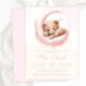 Invitación Chica Oso Acuarela Rosa Revelación de Bebé