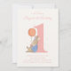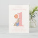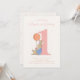 Celebra un primer cumpleaños con esta dulce y simple invitación de Peter Rabbit que incluye el conejo clásico sentado al lado de un gran número rosa "1". Vestido con su icónico abrigo azul y su gorra fiesta, añadiendo un toque festivo al diseño de las suaves acuarelas. Pastel confetti coloca el fondo para un pop de color alegre, mientras que los elegantes detalles de escritura rosa y personalizable completan el aspecto. Perfecto para la celebración del hito de una niña, especialmente para los fans de Beatriz Potter o fiestas con temática primaveral.