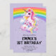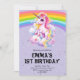 Invitación Chica Púrpura Arcoiris Unicornio 1 cumpleaños